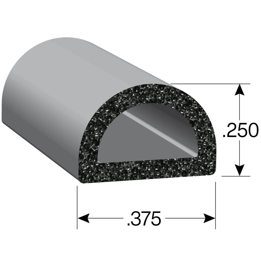 We are proud to offer a .250” (h) x .375” (w) D-shaped weather stripping that can be used as a self-adhesive door seal, or a seal for vehicle trunks, windows, electrical enclosures, boat hatches, and many other applications.